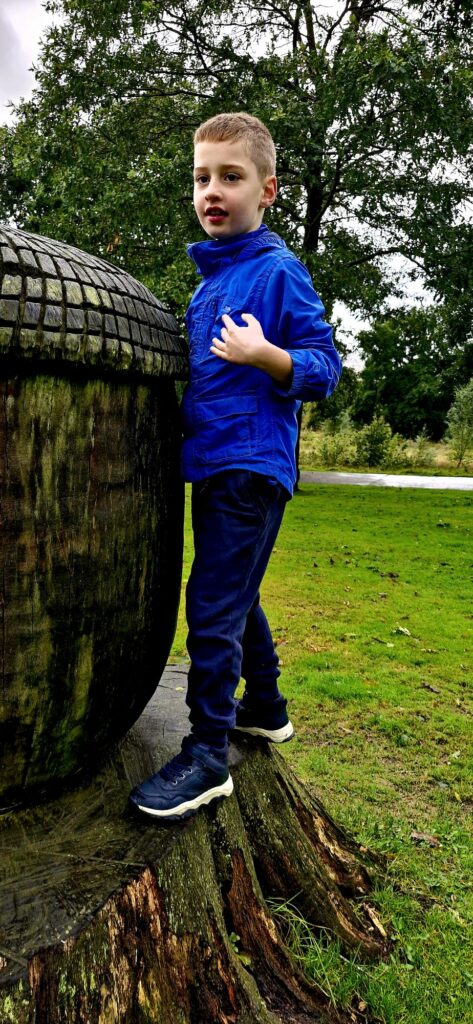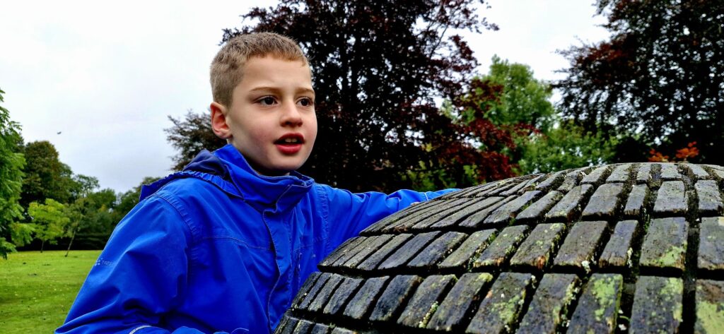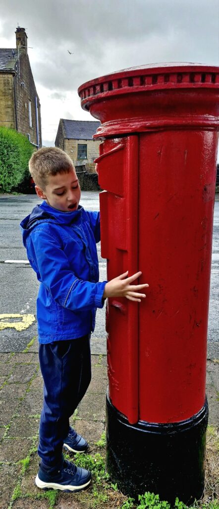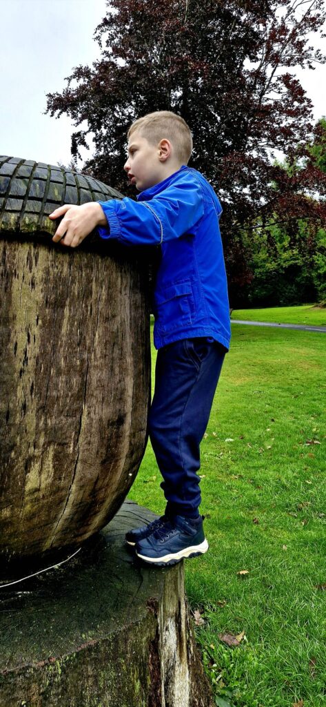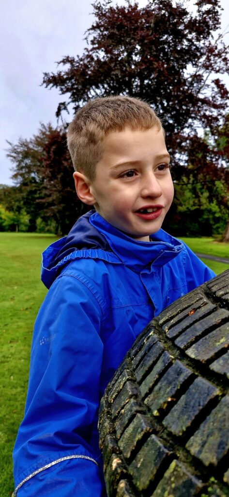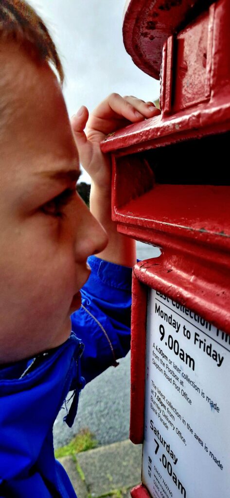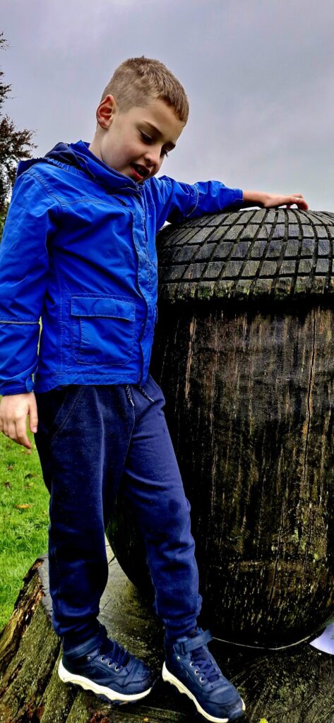 We found Kiefer was calmer after the walk and read the word acorn, writing it down on paper whilst holding the real acorn in his hand.