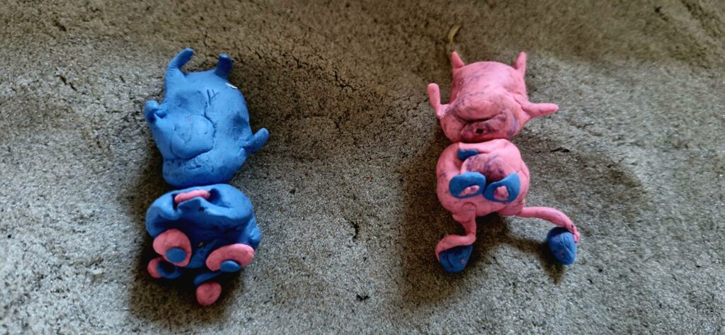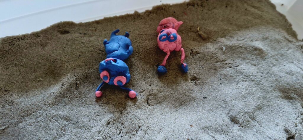 This morning Kiefer decided to model Spotty & Dotty from The Wot Wots, an animation he had been watching last evening.