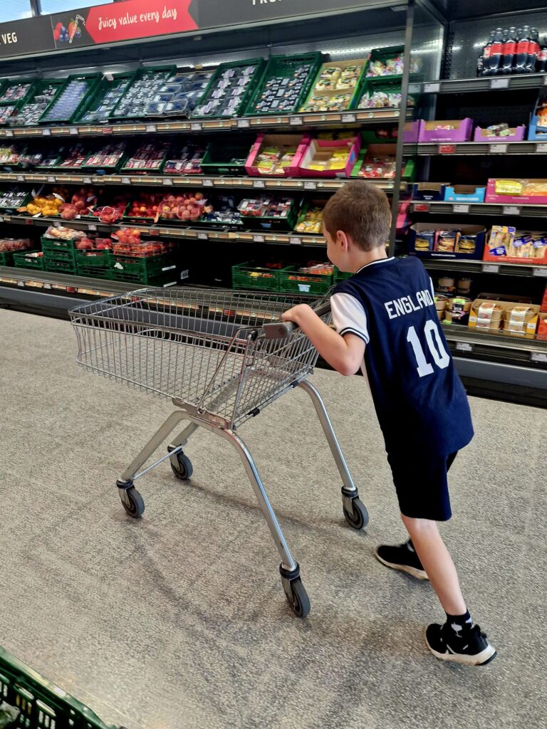 He helped push the trolley on the Friday big shop.