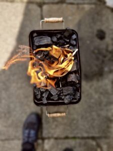 Kiefer took an interest in where his tea was coming from today, as his brother had built a barbecue to cook on.