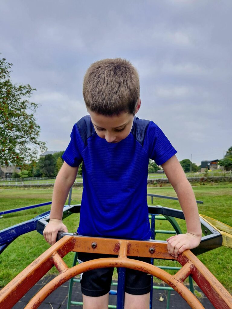Kiefer began the day by playing with his dinosaurs before a special breakfast of homemade pancakes.