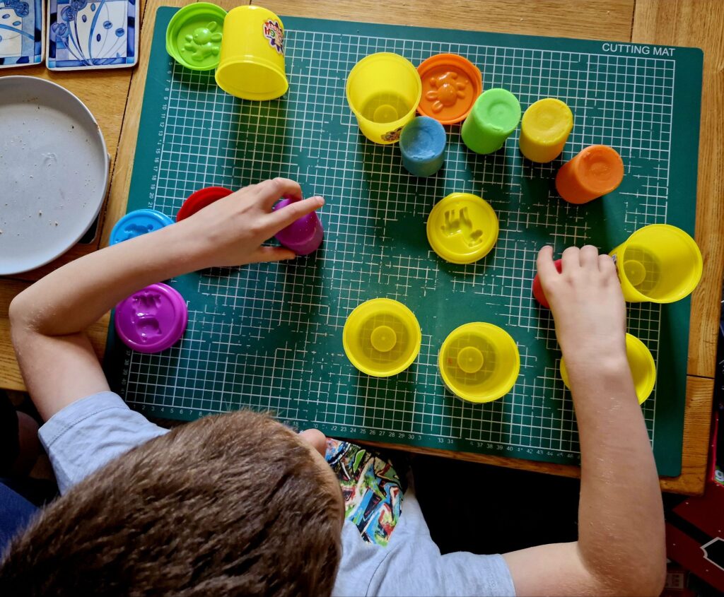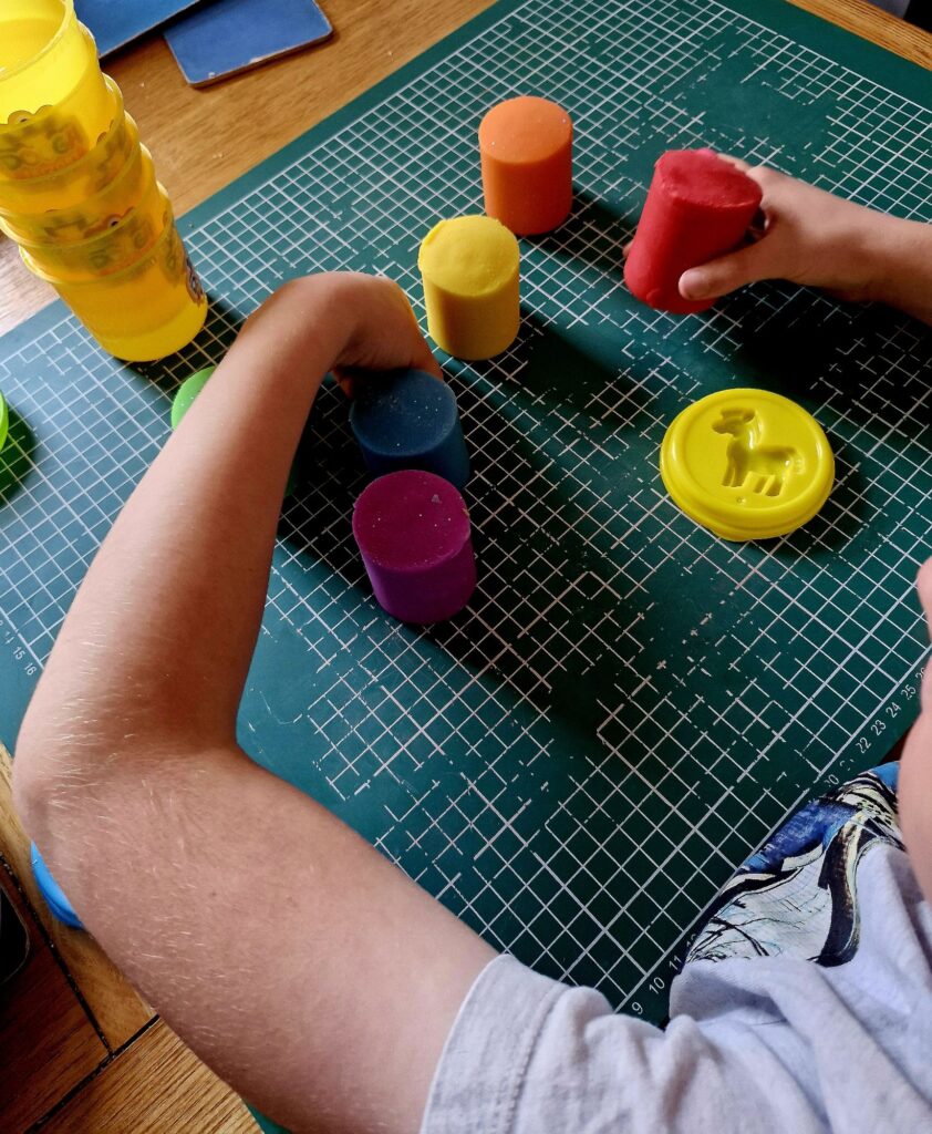 At the shops this morning Kiefer has selected some glitter play dough to buy with his holiday money.