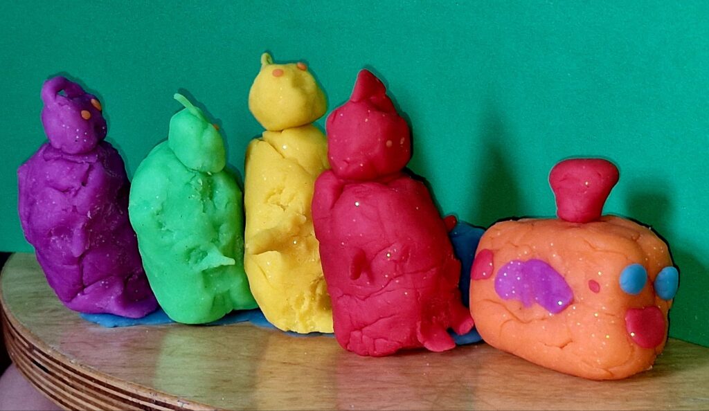 Here, we can see all the Teletubbies on the Tubby Custard Ride.